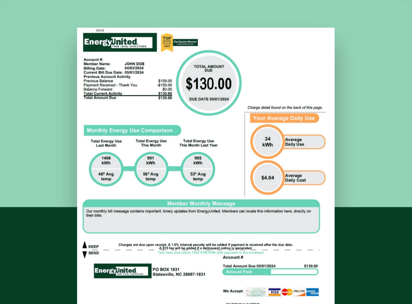 Making payments through My EnergyHub is fast and easy. The first time you make a payment either through the web or through your mobile device, you’ll be able to securely store your payment information for future transactions. The next time you need to pay your bill, it will only take a couple of clicks. You can also set to autopay, and even select to go completely paperless—it’s one way to help us keep rates low for our members!