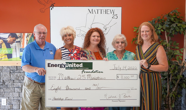 STATESVILLE, N.C. – The EnergyUnited Foundation recently awarded a grant in the amount of $8,000 to Matthew 25 Ministries to provide funding for the organization’s utility bill assistance program.