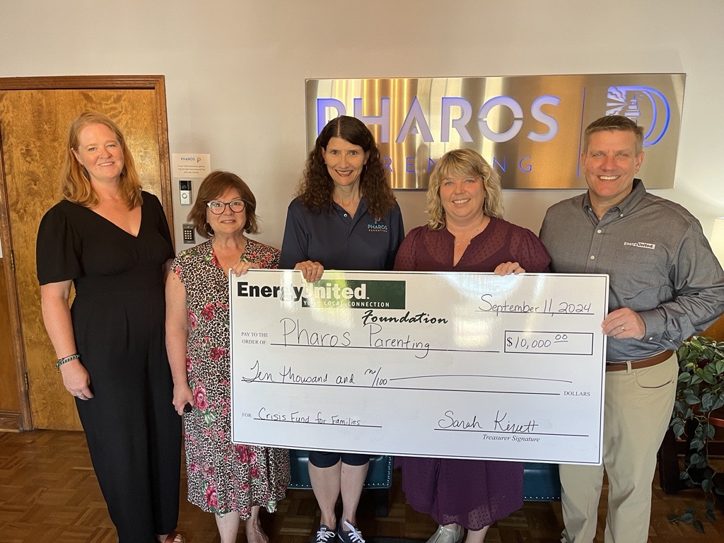 From Left to Right: Debra Citta, program coordinator, EnergyUnited; Sarah Kivett, vice president, EnergyUnited Foundation Board; Susan White, program director, Pharos Parenting; Tonya Fowler, executive director, Pharos Parenting; and Brett Alkins, chief operating officer, EnergyUnited.