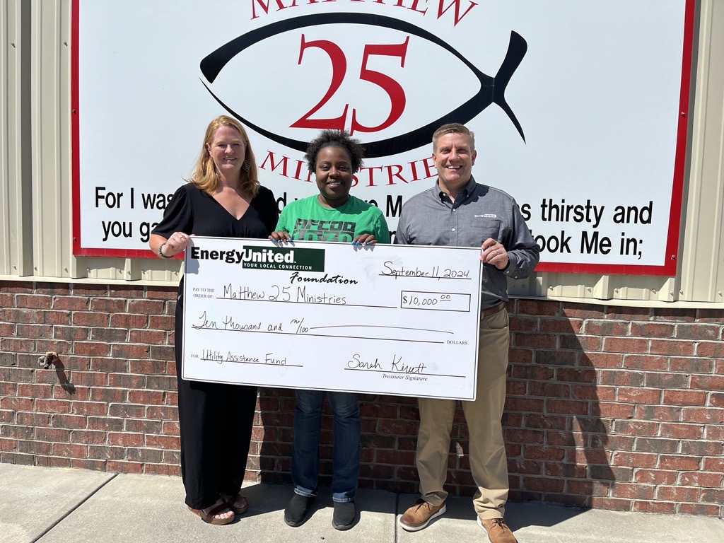 “The EnergyUnited Foundation plays a vital role in our efforts to deliver a brighter energy future,” said LaQuisha Parks, vice president of energy services and corporate communications at EnergyUnited. “By providing assistance to individuals and families in grave need and to nonprofits who provide housing, utilities and humane needs, we are directly contributing to the health and well-being of the communities we serve.”