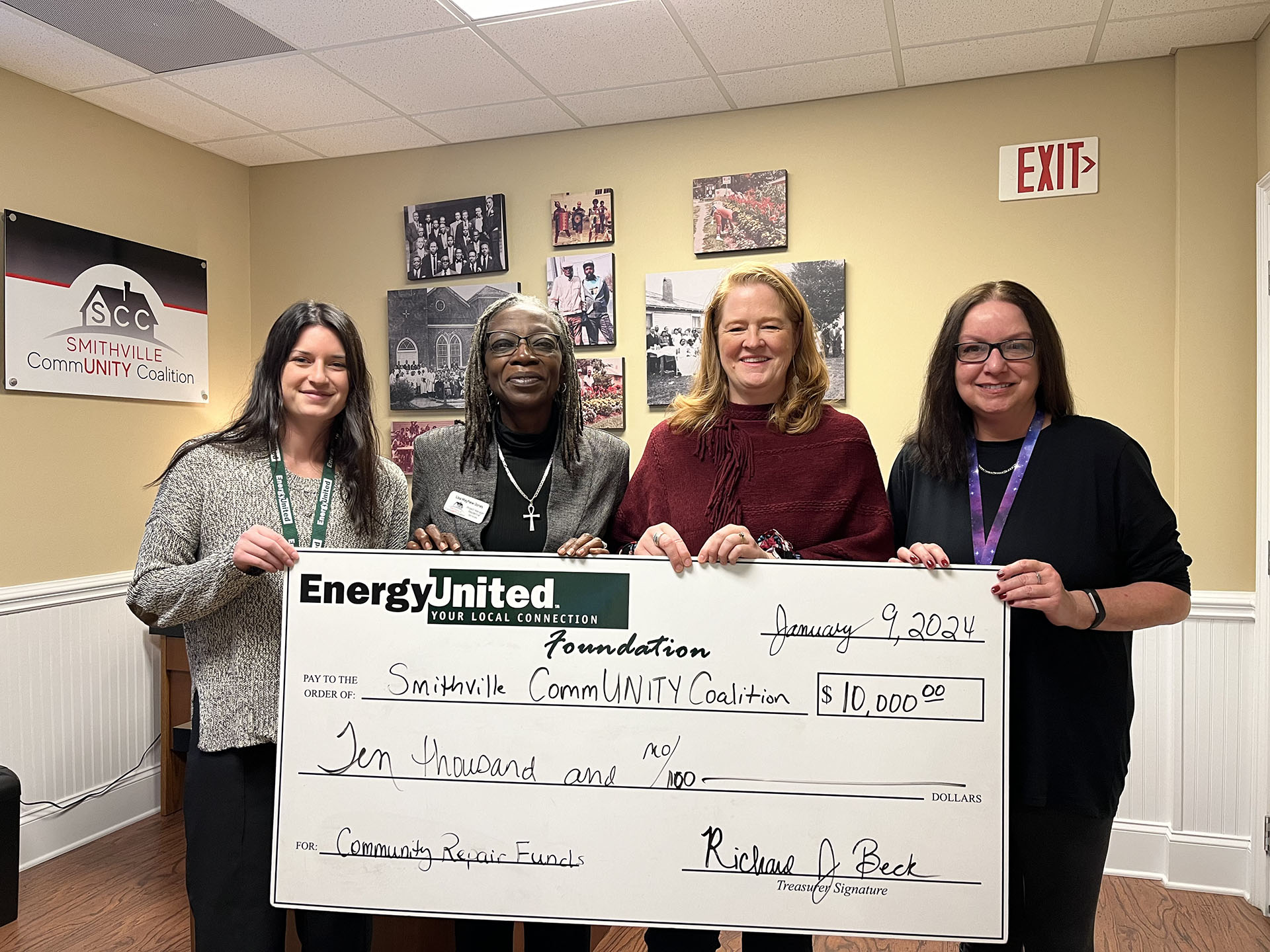 Smithville CommUNITY Coalition is revitalizing a historic African American community. The organization is partnering with Habitat for Humanity to complete critical home repairs for senior residents in Smithville before building new, affordable single family homes and townhomes. The EnergyUnited Foundation awarded $10,000 to help fund critical home repairs for senior residents in Smithville.