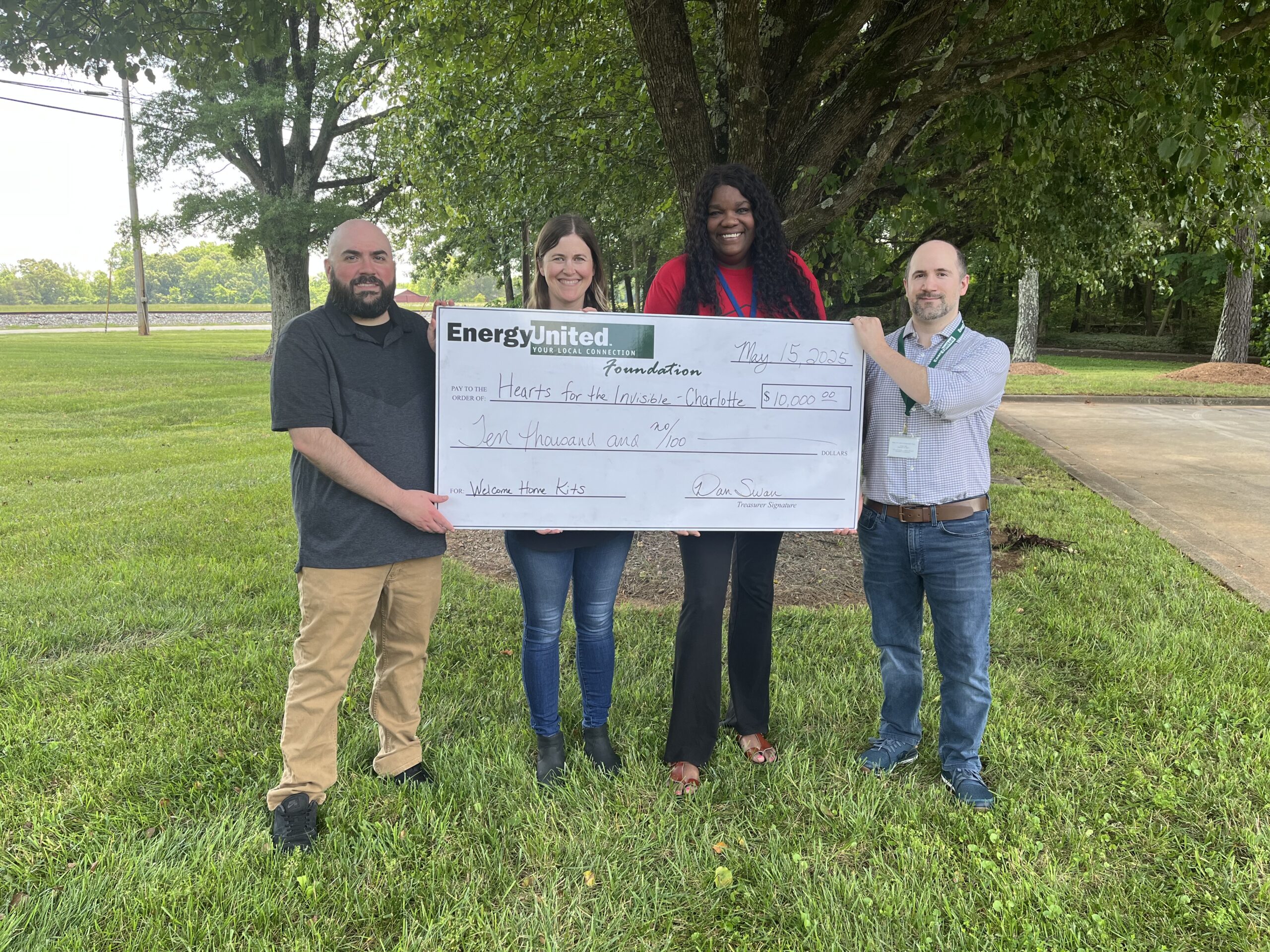 From Left to Right: Kyle Dana, member support specialist, EnergyUnited; KT Harcourt-Medina, director of impact & development, Hearts for the Invisible Charlotte Coalition; Jessica Lefkowitz, founder and executive director, Hearts for the Invisible Charlotte Coalition; Brian Leeper, member support specialist, EnergyUnited.