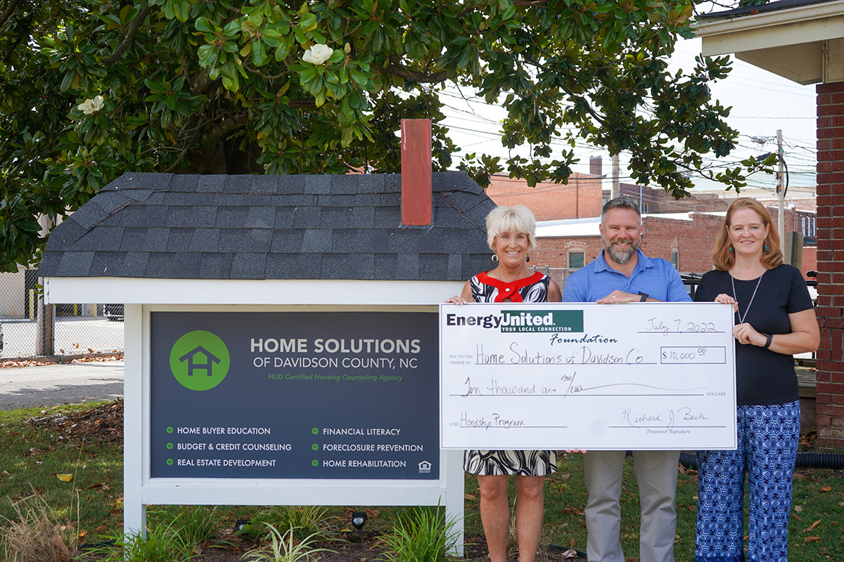 STATESVILLE, N.C. – The EnergyUnited Foundation has awarded a $10,000 grant to Home Solutions of Davidson County (HSDC) to establish a new Financial Hardship Relief program.